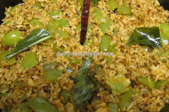 And what comes to my mind right now is a plate of hot Capsicum Bath with some raitha and chips.